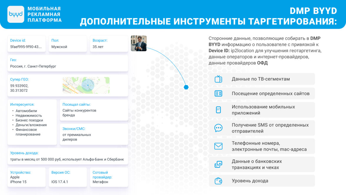 Кроме того, доступ к Big data позволяет находить нужные сегменты, определять уровень дохода и даже отслеживать MAC-адреса.