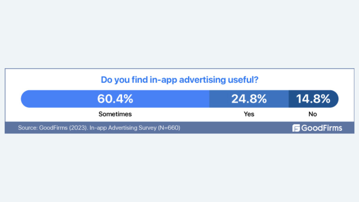 Согласно опросу Goodfirms, 85.2% респондентов считают in-app рекламу полезной, а 56,5% переходят по предложенным ссылкам после ее просмотра, что подчеркивает эффективность формата продвижения.