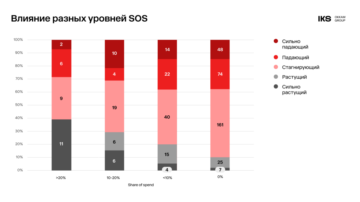Рис. 7. Разные уровни SOS у брендов разного масштаба
