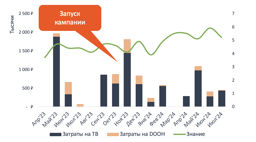 Рассмотрим эффективность омниканального подхода на примере кейса. Производитель мяса ставил цель увеличить узнаваемость на очень конкурентном рынке в Краснодаре. Компания запустила региональную кампанию на ТВ и в качестве поддержки купила уличную цифровую рекламу (DOOH). В результате уровень знания о бренде увеличился на 59%, а продажи — на 13%.