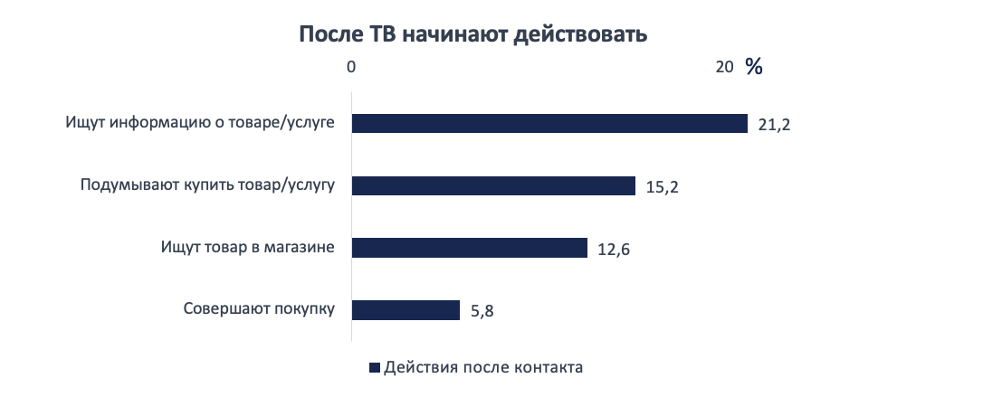ТВ увеличивает намерение совершить покупку на 23% — Исследовательская группа Kantar. 47% зрителей больше всего доверяют рекламе нового бренда, которую видят по телевизору — опрос OMI Omnibus.В 2023 году рынок ТВ-рекламы вырос более чем на 20% в рублевом выражении — исследовательский отдел AdIndex.