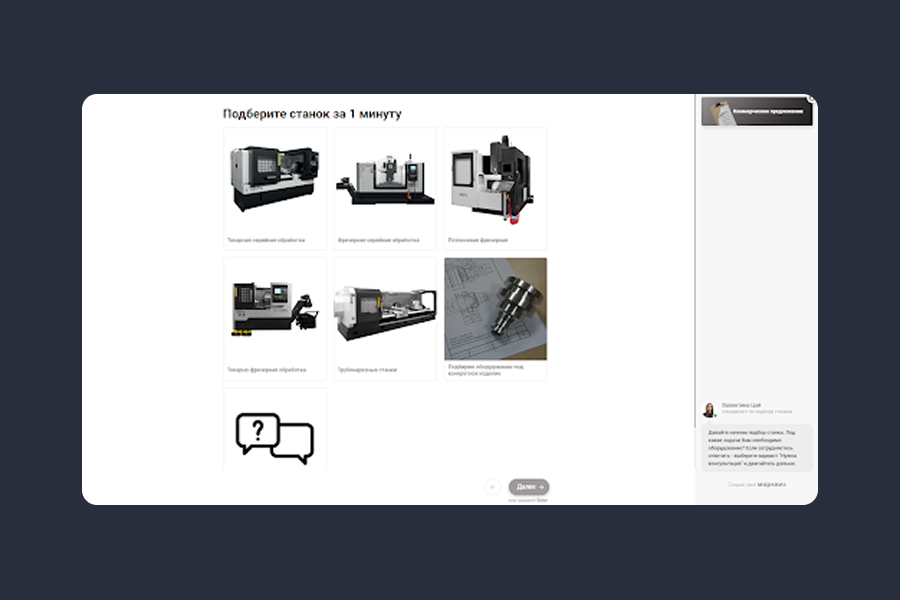 Пример квиза для завода по производству станков с ЧПУ, созданный в Марквизе
