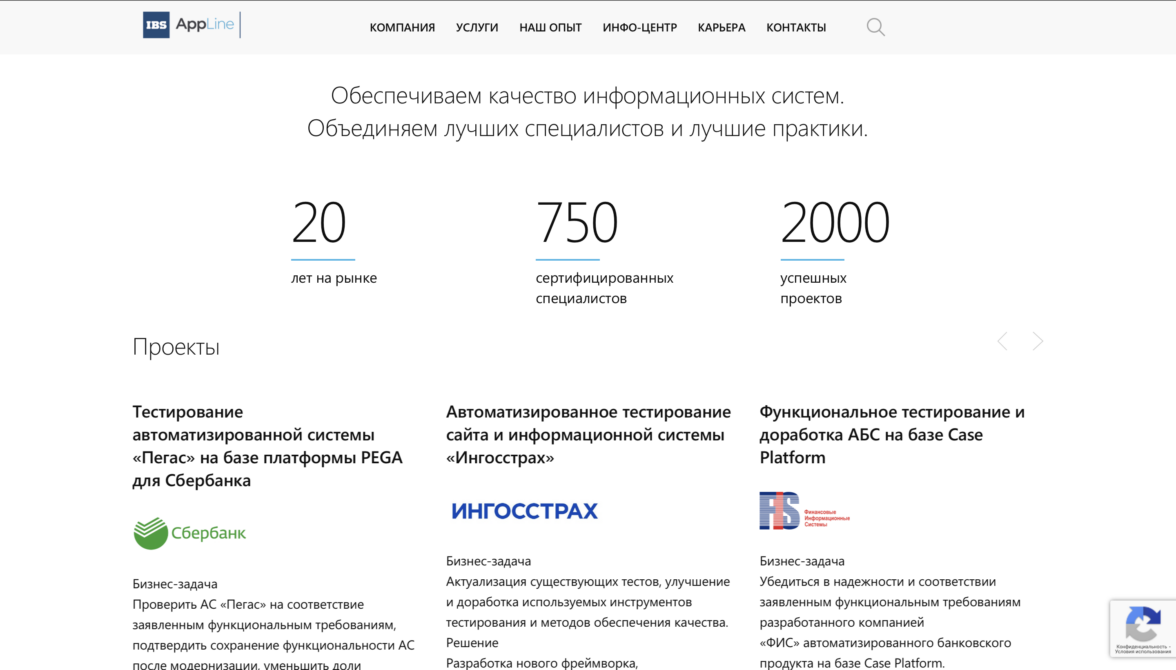 Компания Appline проверяет качество работы внутренних систем, приложений и цифровых продуктов, оценивает удобство взаимодействия пользователя с ними и многое другое, что сокращает риск ошибок в работе и сбои в бизнес-процессах. Среди клиентов компании — Центральный Банк РФ, Сбербанк, Лукойл, Газпромбанк и др.