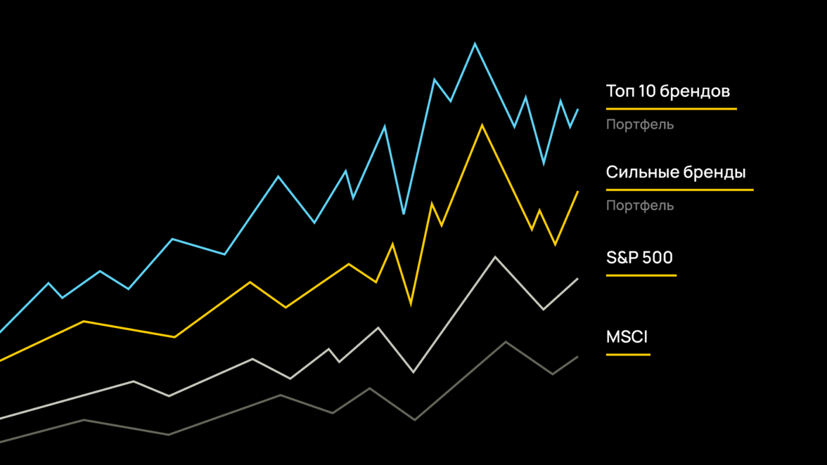 Например, компании с сильными брендами приносят бо’льшую доходность. По данным McKinsey, портфель компаний, представляющих топ 40 брендов из портфеля MSCI превзошел общую доходность индекса MSCI в 2 раза за последние 20 лет. Исследования Kantar подтверждают эти выводы: 100 долларов, вложенные в 2006 г в портфель компаний с топ-10 брендами сегодня принесут 534 доллара, по сравнению с 345 долларами от портфеля S&P и 224 долларами от компаний MSCI.