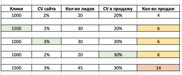 Все это дает один и тот же результат — увеличение количества продаж в полтора раза.