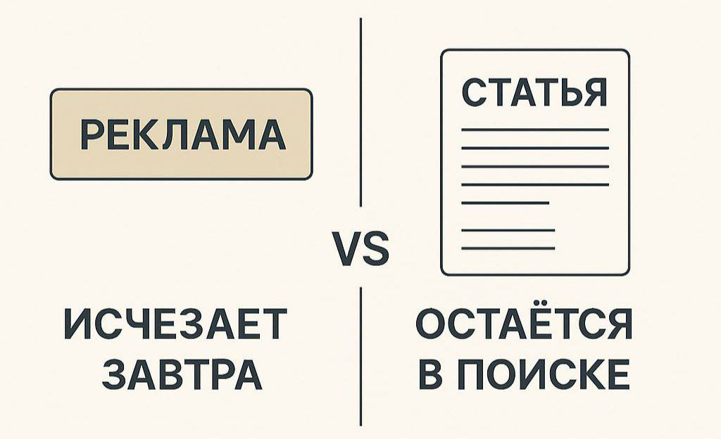 Системная работа с публикациями позволяет превратить этот риск в инструмент. Экспертные материалы, аналитические статьи и интервью закрепляют позицию предпринимателя как компетентного и надёжного игрока. В отличие от рекламы, которая исчезает вместе с бюджетом, публикации формируют долговременный след в поисковой выдаче, укрепляют доверие и создают устойчивый имидж.