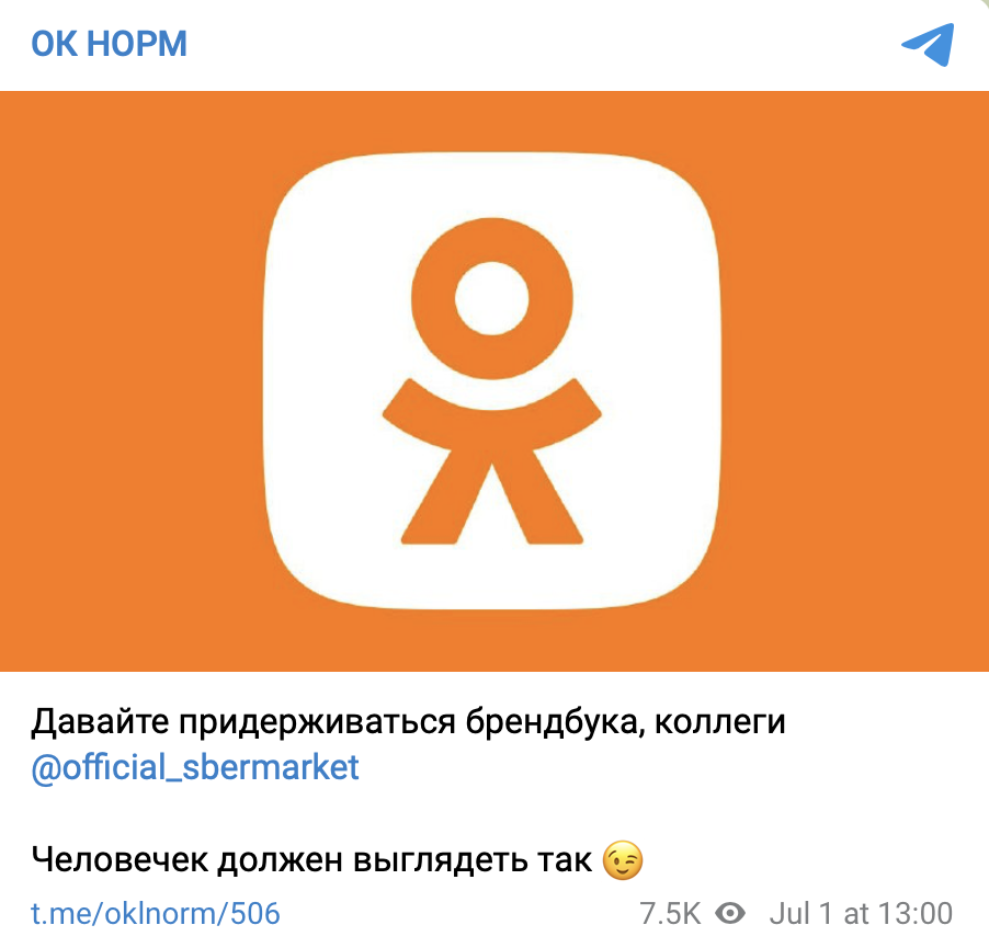 Также многие отметили, что новая иконка человечка копирует, а лучше сказать пародирует логотип социальной сети Одноклассники. Они тоже не прошли мимо ребрендинга и подозрительной схожести логотипов. «Давайте придерживаться брендбука, коллеги. Человечек должен выглядеть так», — прокомментировала компания в своем Telegram-канале.