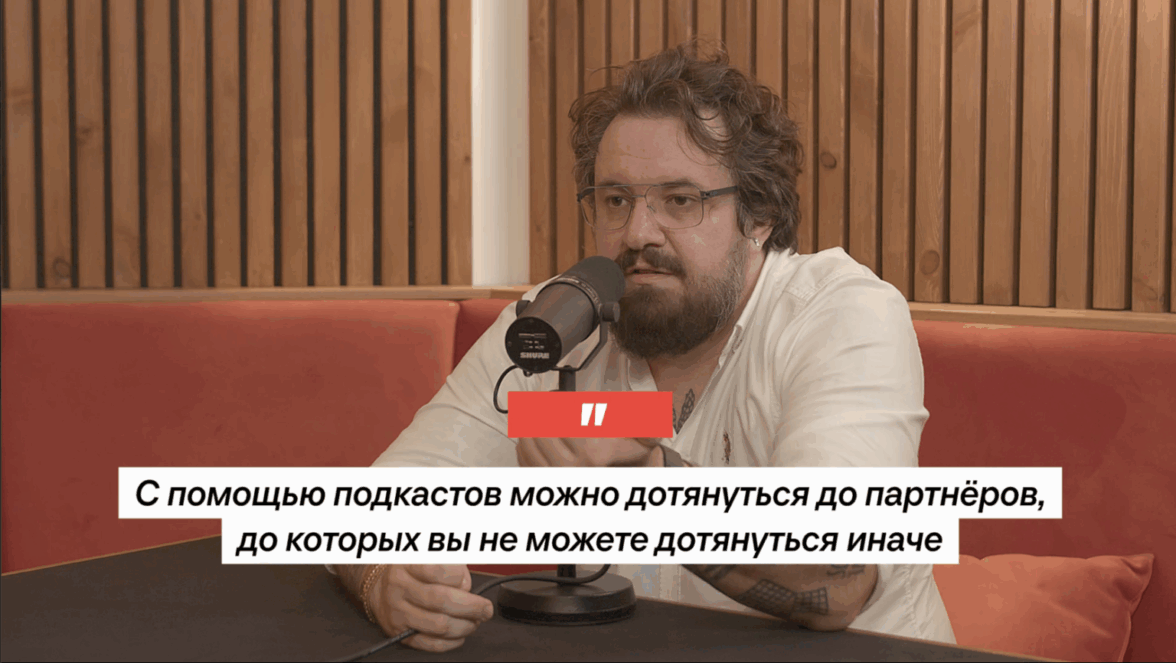 Когда владелец бизнеса хочет с кем-то поговорить в подкасте, нужно понимать, что с помощью подкастов можно дотянуться до партнеров, до которых нельзя иначе, и создать инструмент полезности.