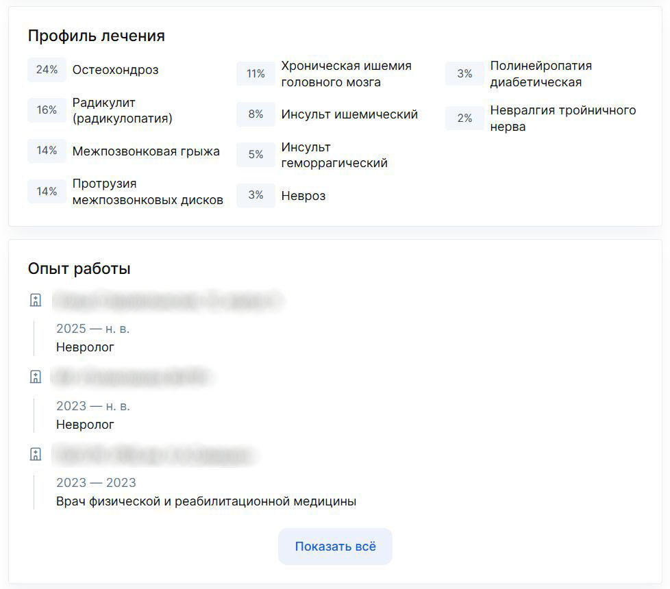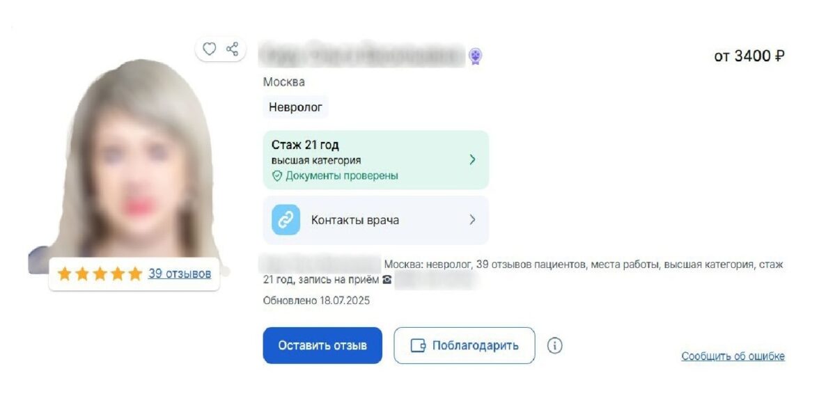 Пример хорошо оформленного профиля врача на ПроДокторов