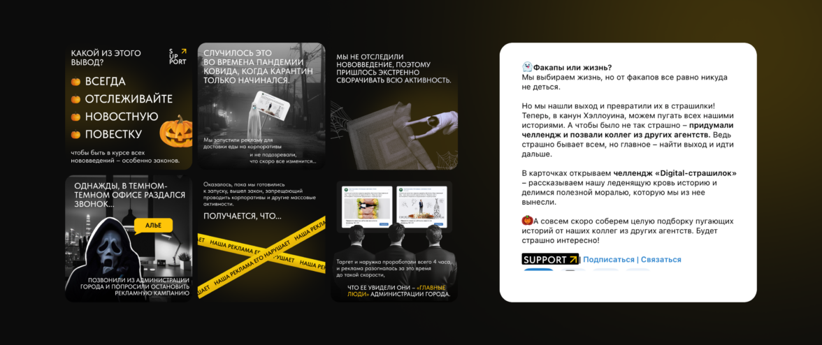 В преддверии Хэллоуина мы предложили коллегам из папки поделиться своими страшными историями, связанными с рабочими процессами, и поучаствовать в челлендже «Digital-страшилки». Как известно, страшилки рассказывают в кругу друзей, чтобы не так сильно бояться. — на этом и строилась идея.