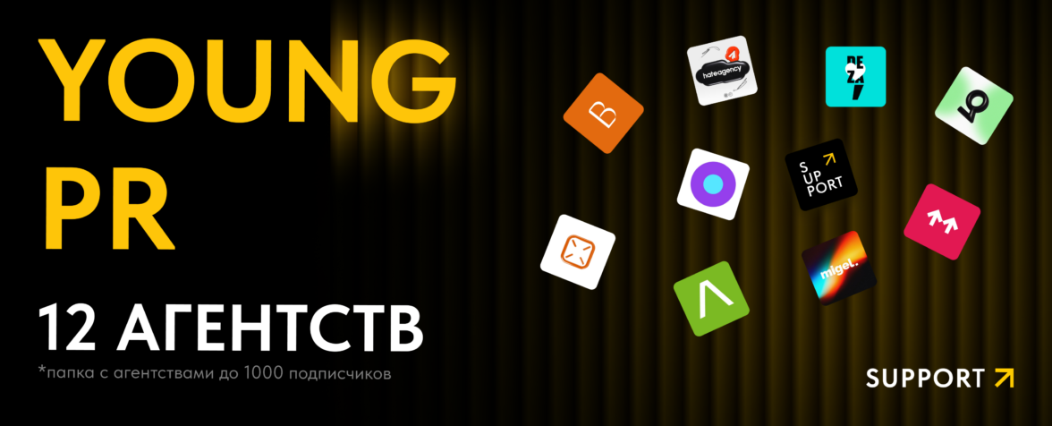 Вместе с коллегами мы собрали папку «Young PR». В нее вошло 12 молодых амбициозных агентств.