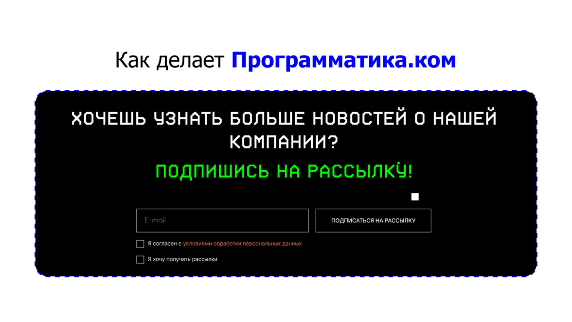 Форма подписки — эффективный способ сбора базы подписчиков для email-рассылки. Она позволяет компании напрямую взаимодействовать с потенциальными клиентами, информировать их о своих продуктах и услугах, стимулировать к покупке. Чтобы форма подписки работала, нужно чётко сформулировать преимущества подписки и обеспечить лёгкость процесса.