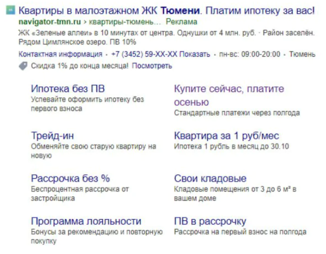 Это может быть связано с оценкой объявления рекламной системой, и соответствующей низкой позицией показа. А может быть промашкой маркетолога, который упустил возможность добавить лишнее УТП и повысить релевантность и конверсию рекламной кампании. Например, в Москве и СПб повлиять на выбор в вашу пользу может аргумент «квартира у метро».