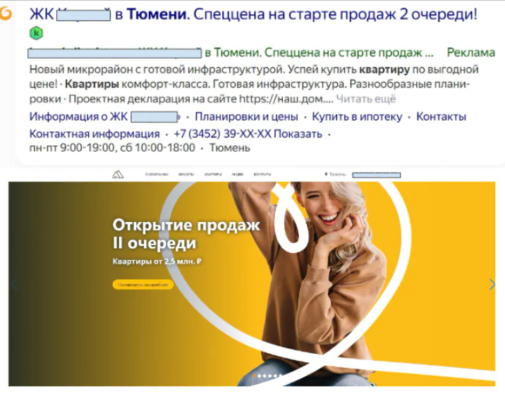 88,1% объявлений ведет на одностраничный сайт или страницу ЖК.