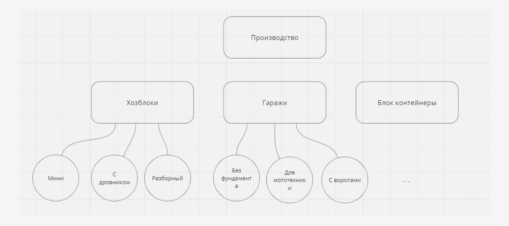 Таким образом мы получили структуру, когда у нас есть основные категории: гаражи, хозблоки и блок контейнеры, а все входящие в них запросы распределены между основными подкатегориями и страницы с тегами.