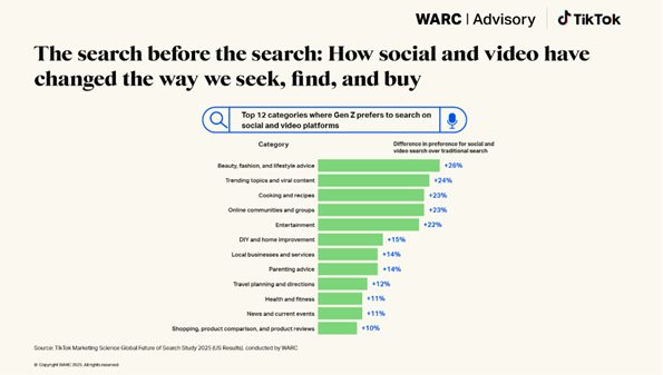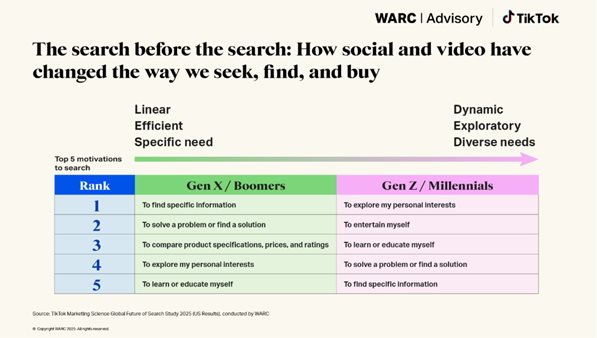 «Переосмысливая, что такое поиск, мы открываем новые способы взаимодействия с потребителями — глубокие и содержательные. Поиск — это не только получение информации, но и открытия, и удовлетворение любопытства», — уверяют WARC и TikTok в совместном отчете.