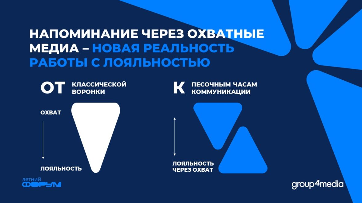 Пересоберите классическую воронку коммуникации. 63% зумеров не подписываются на соцсети любимых брендов. Вместо этого они иногда посещают страницы брендов в екоме или узнают новости из рекламы. Чтобы находиться в зоне внимания зумера, стоит перейти от традиционной воронки коммуникации к «песочным часам» — даже на этапе работы с лояльностью использовать охватные инструменты для повторного вовлечения и удержания аудитории, которая вас уже знает и покупает.