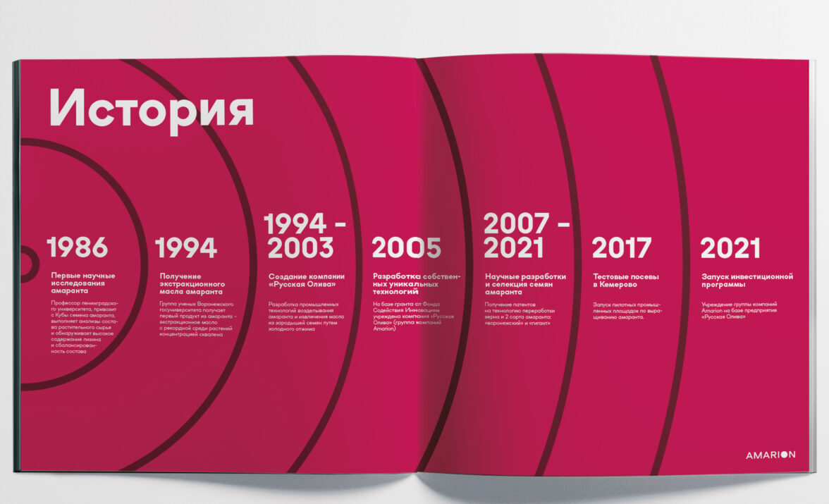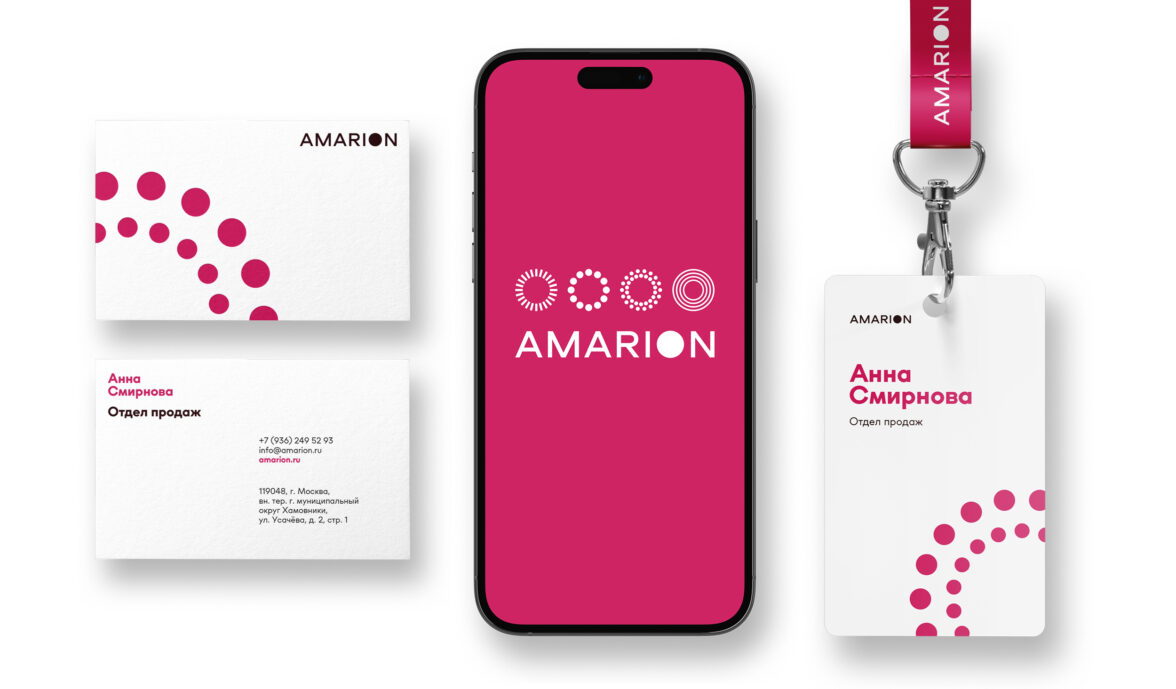 В фирменном стиле основным сделали амарантовый цвет, чтобы закрепить его за компанией Amarion.