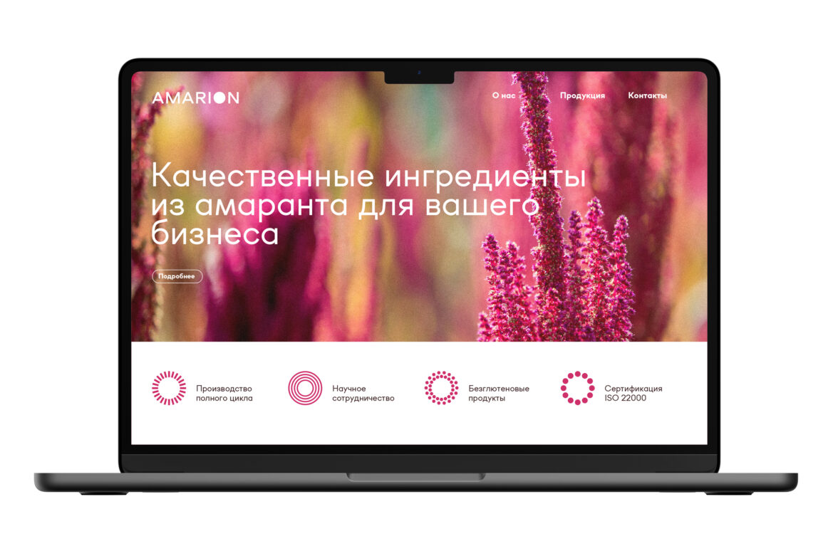 Каждое из направлений деятельности Amarion — B2B-продукция, исследования, продукты из амаранта и выращивание амаранта — получило свое название: pro, lab, prod и agro соответственно.