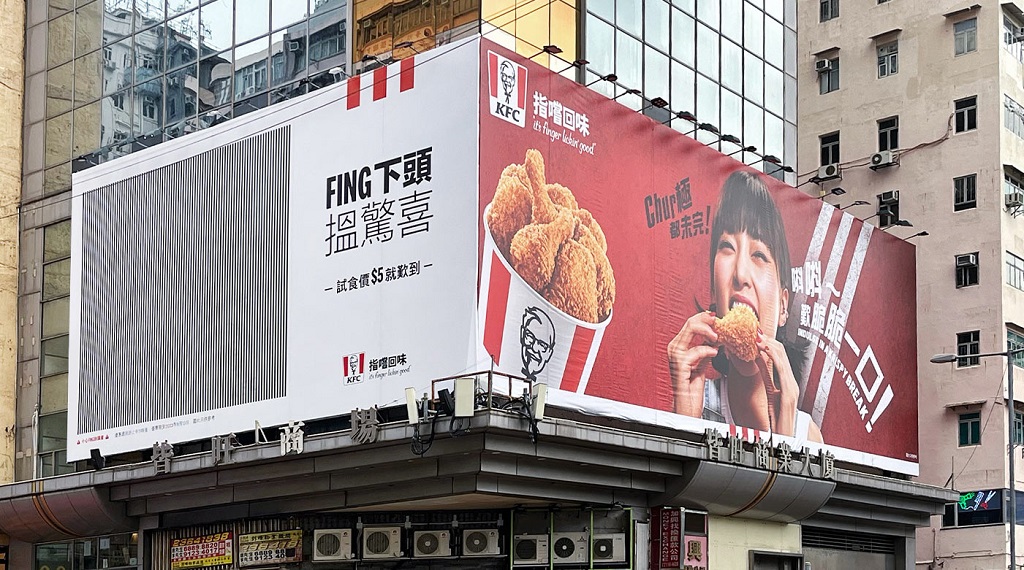 Реклама KFC с оптической иллюзией. Рекламный щит с необычным креативом удивил прохожих.