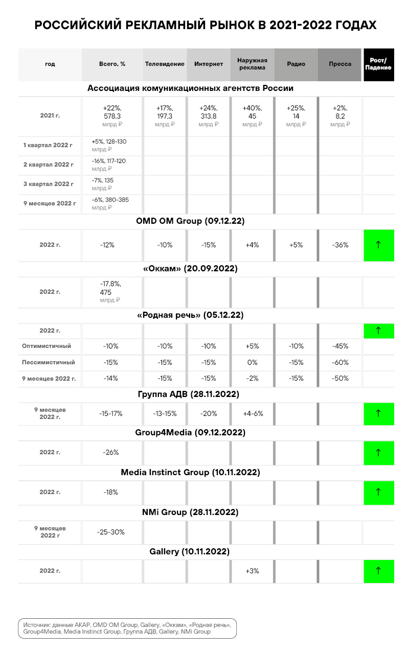 падение рекламного рынка в 2022 году по версии «Родной речи»