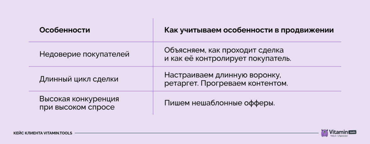 Если учитывать особенности ниши, то на каждом этапе мы должны доказывать пользу услуг заказчика. На посадочной странице рассказывать, чем покупка машины на заказ выгодна — это поможет завоевать доверие. В объявлениях тоже делать упор на ценность и выгоду. А в социальных сетях регулярно публиковать полезный контент, например, кейсы и ответы на частые вопросы.