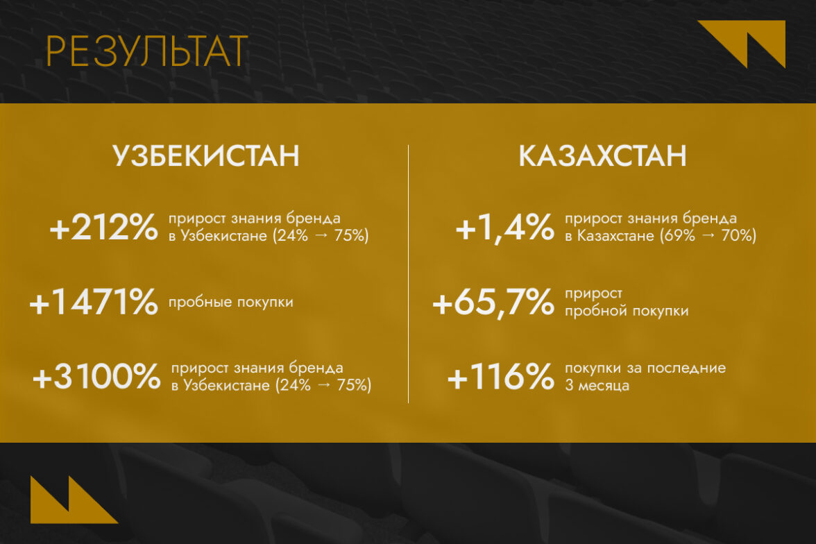 поднять узнаваемость бренда до 70% в Казахстане и Узбекистане;