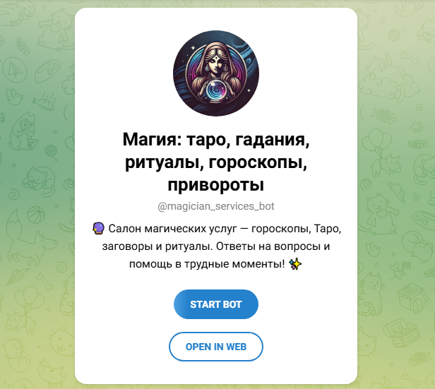 5. Магия: таро, гадания, ритуалы, гороскопы, привороты — мультисервисный салон в Telegram