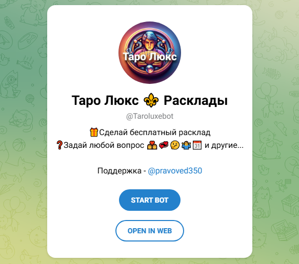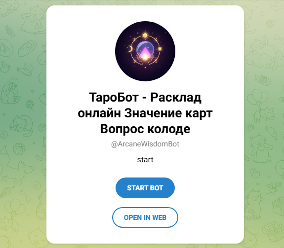 Бот создан на стыке ИИ и опыта практикующих тарологов: пользователь задаёт вопрос, получает визуальный расклад и расшифровку карт прямо в чате. Регистрация не требуется, активная аудитория — несколько сотен человек в месяц.