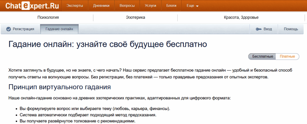 6. Chatexpert — маркетплейс эзотериков, безопасная сделка, витрина готовых раскладов, гарантия возврата.