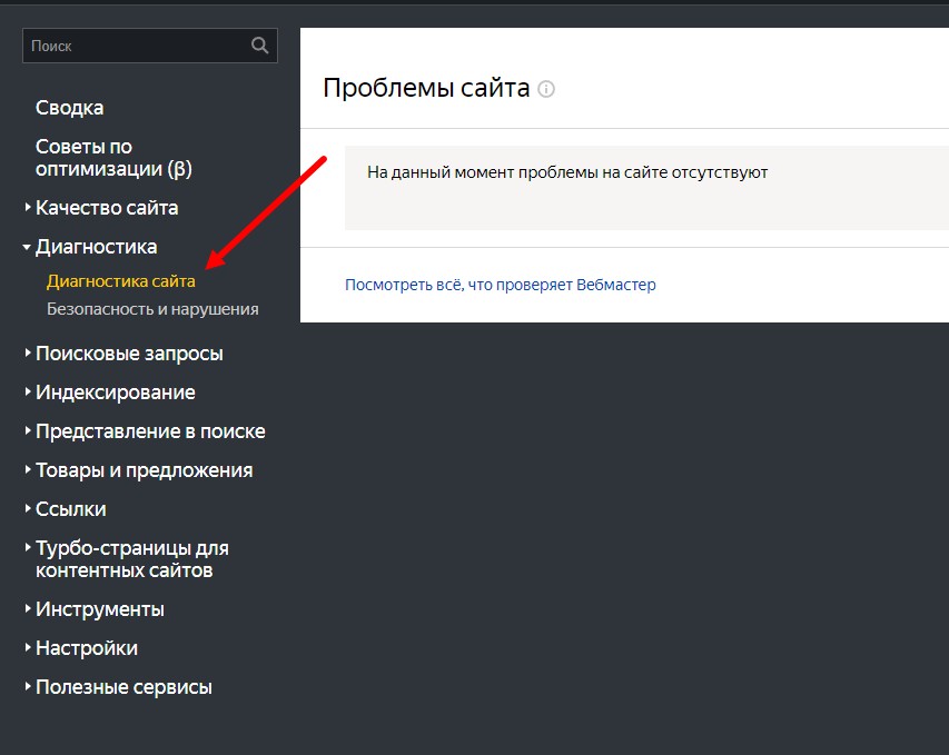 Что делать? Просмотреть полный список проблем в блоке «Возможные проблемы» в панели Яндекс. Вебмастер.