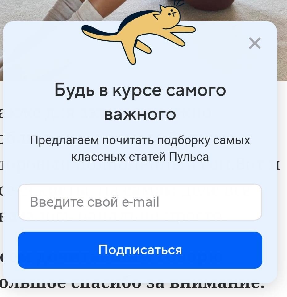 Самые популярные попапы, которые предлагают оставить контакты, чтобы компания смогла дальше присылать контент или другую информацию.