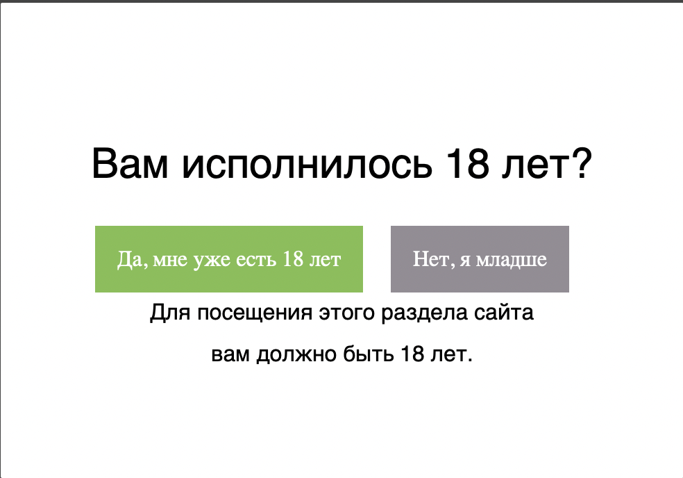 Информационные попапы также становятся ограничителями для посещения сайта. Например, если в интернет-магазине продаётся алкоголь, то всплывающее уведомление расскажет про возрастные ограничения.
