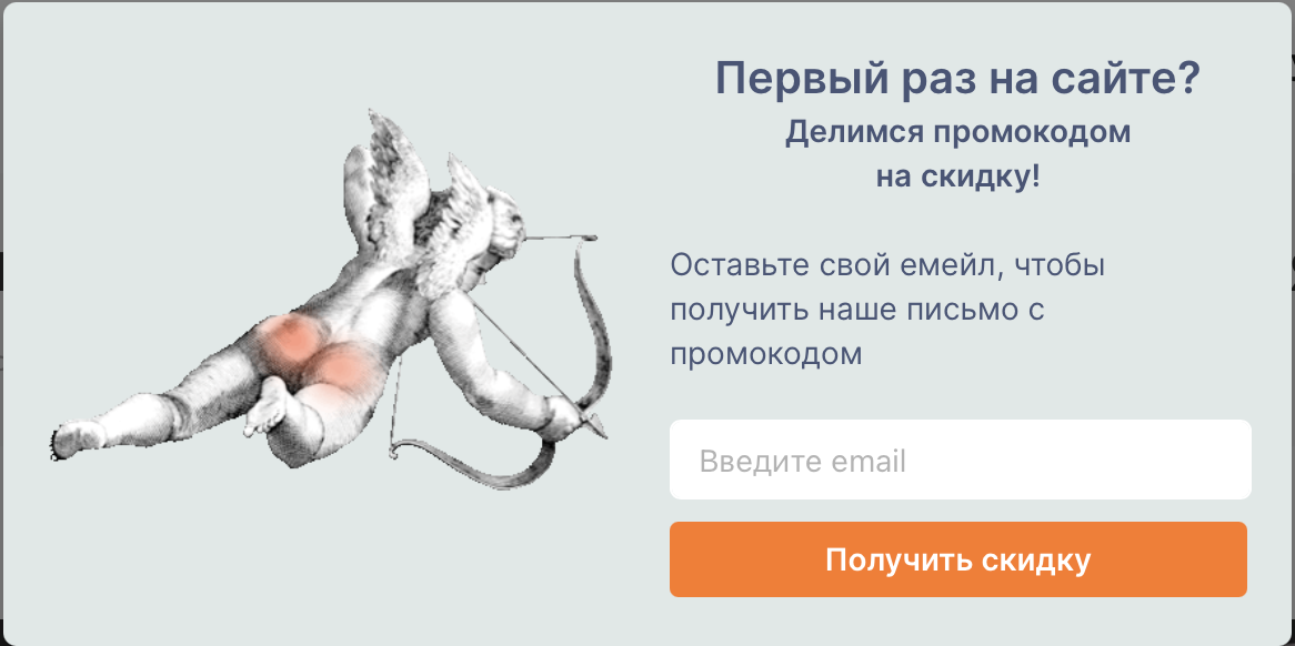 Другой вариант — сразу показать промокод во всплывающем окне, но попросить оставить адрес электронной почты.