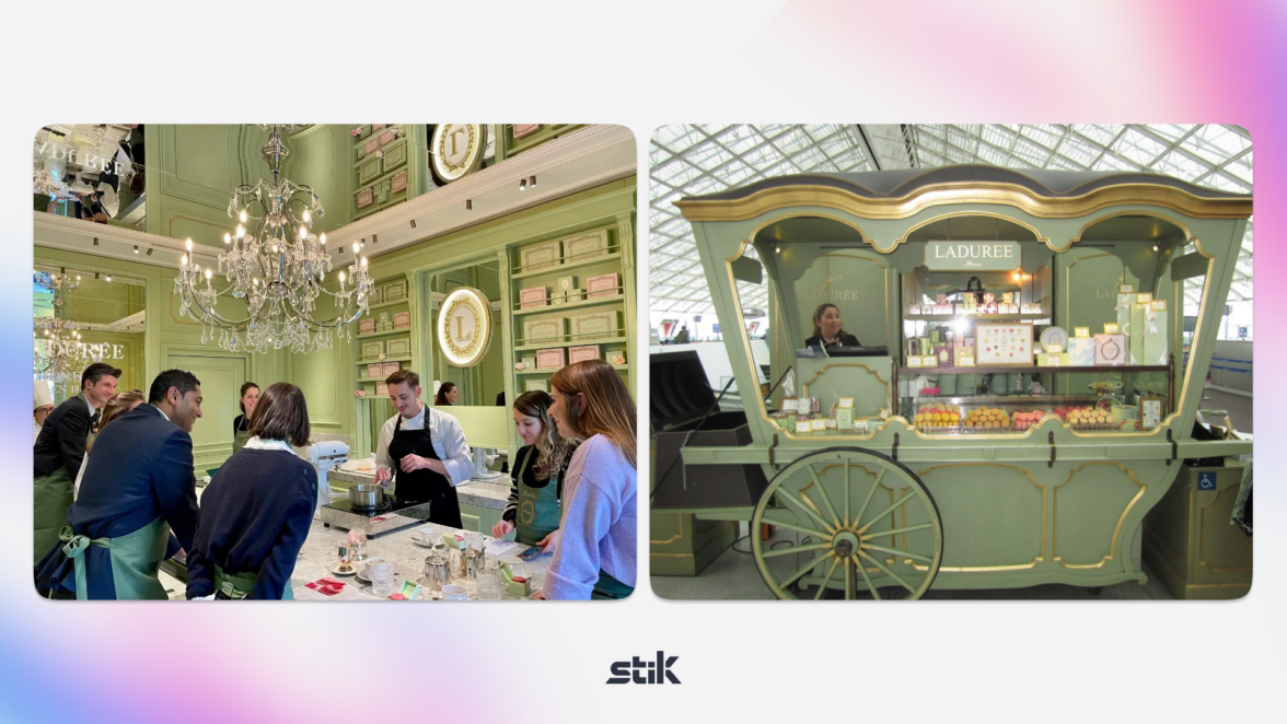 Например, популярный французский бренд Laduré. Они превращают покупку в сказку через тематические мероприятия и интерактивные пространства. Тематические вечера и мероприятия, которые полностью погружают посетителей в мир бренда.