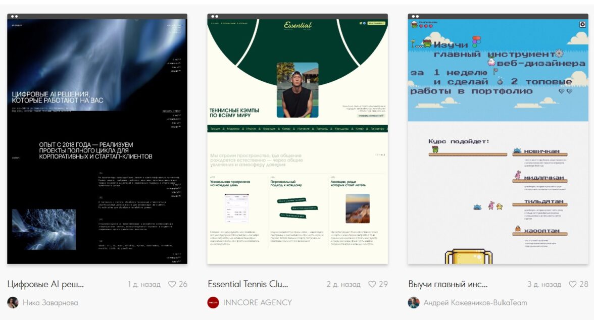 Для вдохновения можете посмотреть примеры лендингов на Tilda Publishing или Behance.