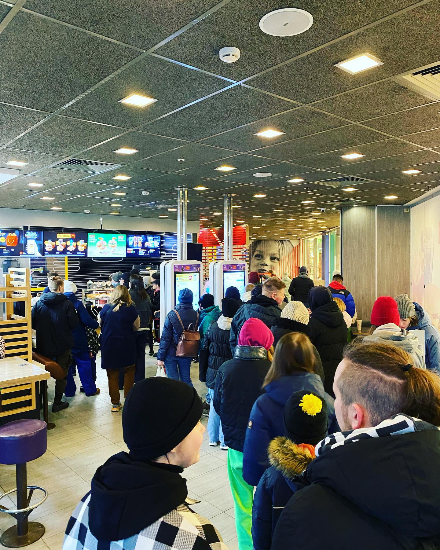 Это воскресенье стало последним для 850 ресторанов McDonald’s в России. Начиная с сегодняшнего дня работа всех заведений, кроме тех, которые были открыты по франшизе, приостановлена на неопределенный срок. Чтобы успеть насладиться бургером и картошкой фри, россияне выстраивались в огромные очереди почти во всех городах. Как страна прощалась с любимым фастфудом, посмотрел ADPASS.