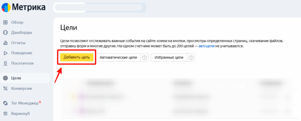 открыть раздел «Цели» в настройках счетчика и нажать «Добавить цель»;