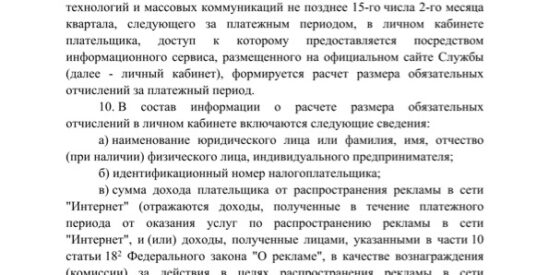 Размер сбора не может превышать 3% от дохода, полученного от услуг по распространению интернет-рекламы, с учетом стоимости агентских услуг.
