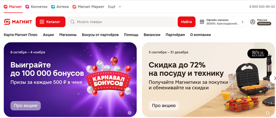 ● Сервисы в мобильном приложении: «Магнит: Доставка», «М.Косметик», «Магнит Аптека», «Магнит Маркет».