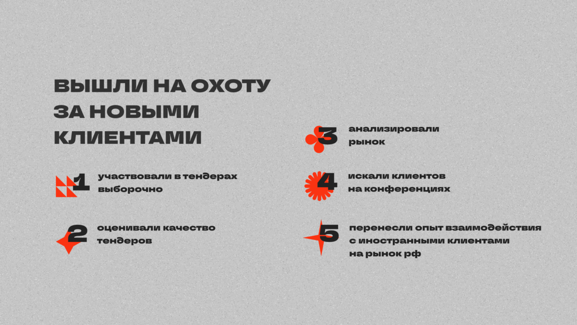 К лету нам удалось стабилизироваться: постепенно стали приходить новые выигранные тендеры и задачи. Это позволило уже в середине лета вернуть изначальные зарплаты и даже — часть людей. А в 2023 мы смогли встать на рельсы и поехать уже обновлённым составом с большим портфелем клиентов и опытом. Теперь мы знаем, на что способны.