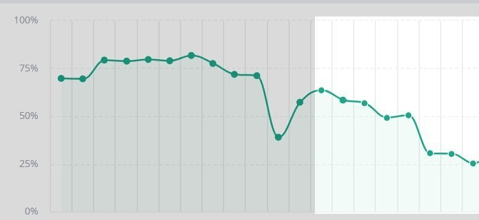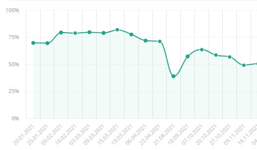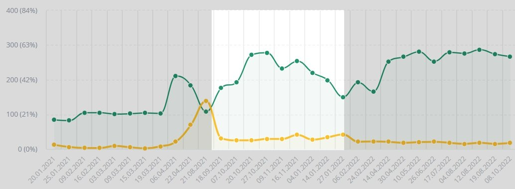 Результат, опять же, был нестабильным: рост позиций закончился их возвратом на исходные позиции, а реальная видимость сайта ещё снизилась: