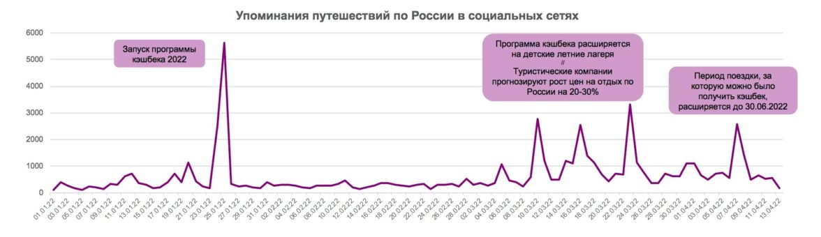 Рост интереса к поездкам по России. В конце марта — начале апреля 2022 был зафиксирован рост интереса к поездкам по России. Это связано с несколькими ключевыми факторами:
