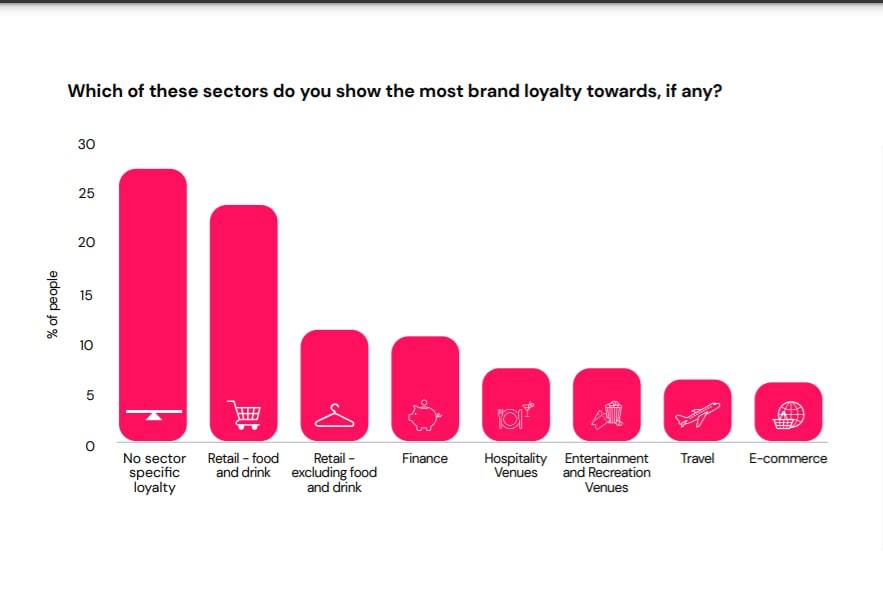 27,4% потребителей вообще не проявляют «лояльности к бренду» ни в одном из секторов, следует из исследования. По крайней мере у 75% нет «сильного» уровня лояльности.