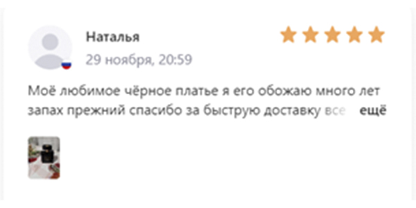 Как показывает анализ отзывов на Wildberries, существенная доля покупателей еще со времен «ароматных каталогов» является приверженцами знакомых брендов и приобретает подобные товары регулярно. В галерее отзывов можно встретить фидбэки о том, как покупатели используют одно и тоже средство на протяжении нескольких лет и даже десятилетий. Вот это привычка! Проверенным временем брендам, судя по всему, до сих пор доверяют.