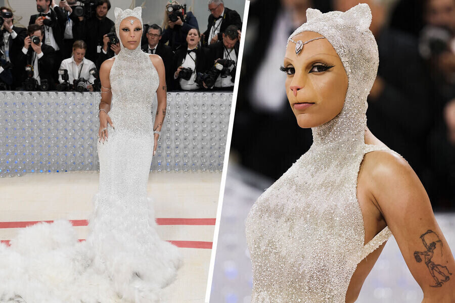 Доджа Кэт в образе кошки (Met Gala 2023) — её появление в костюме кошки от Chanel привлекло внимание и вызвало массу мемов, так как это был яркий пример того, как звезда превращает Met Gala в предмет вирусного контента. Образ Доджи быстро стал мемом в соцсетях, создавая огромный поток разговоров и дополнительно закрепив Met Gala как важную культурную веху.
