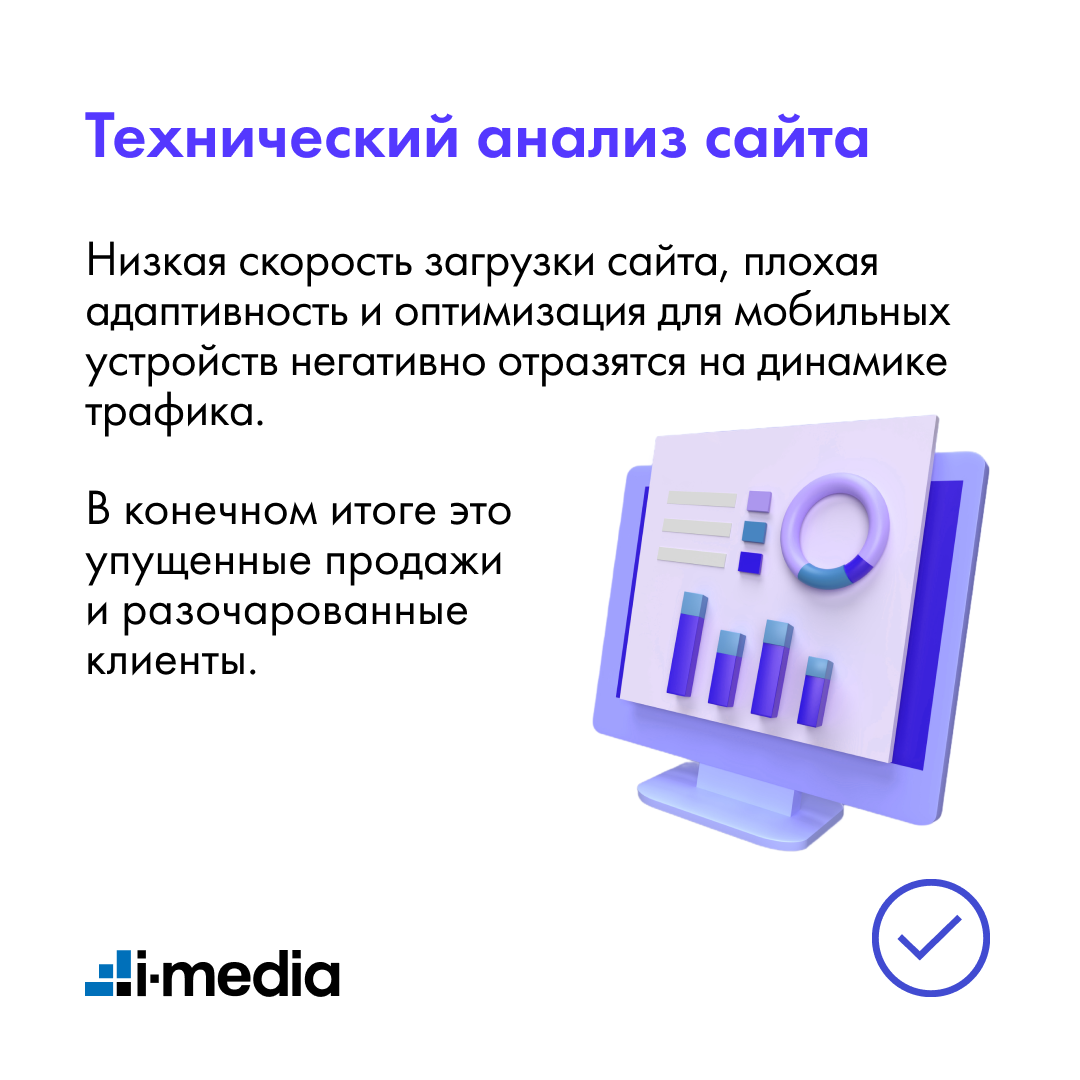 Низкая скорость загрузки сайта, плохая адаптивность и оптимизация для мобильных устройств негативно отразятся на динамике трафика. В конечном итоге это упущенные продажи и разочарованные клиенты.