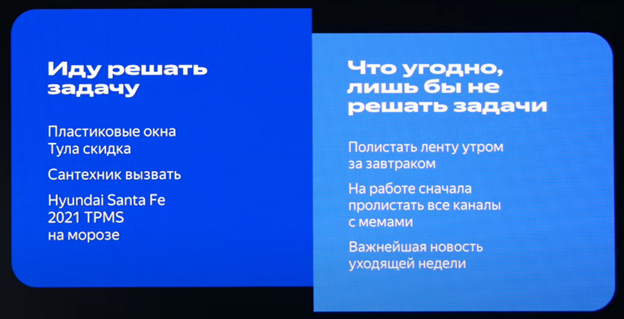 Уход от решения задачи и ответственности: Пользователь ищет контент, который отвлечет его от повседневных задач.