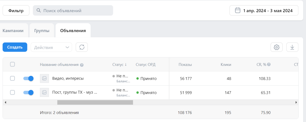 На основе предыдущего успешного опыта совместной работы и глубокого понимания специфики музыкальной индустрии, мы предложили комплексный подход, включающий таргетированную рекламу и стратегические закупки в музыкальных и образовательных сообществах. Это позволило не только значительно увеличить видимость проекта, но и гарантировать его успех в рамках строгих требований гранта.