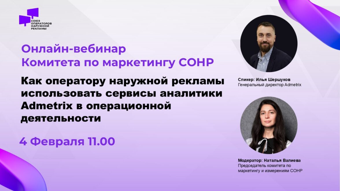 4 февраля в 11:00 приглашаем операторов наружной рекламы на онлайн-вебинар «Как оператору наружной рекламы использовать сервисы аналитики Admetrix в операционной деятельности».